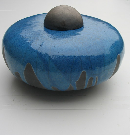 Blauwe ronde schijf, doet denken aan een Ufo